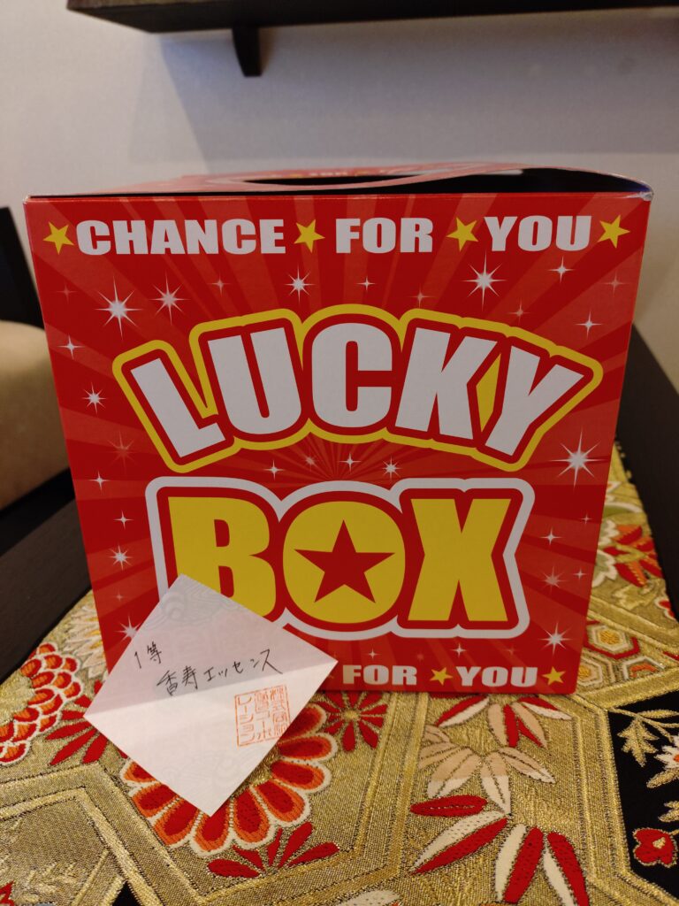 今回の物販1等は、当店オリジナル美容液〈香寿エッセンス〉。