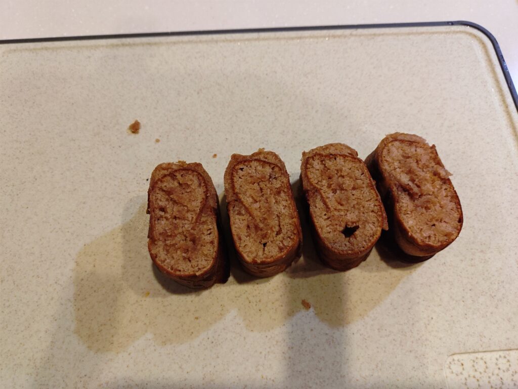 でも切ったらうっすら年輪っぽい模様があったので強引にバウムクーヘン認定しました。
